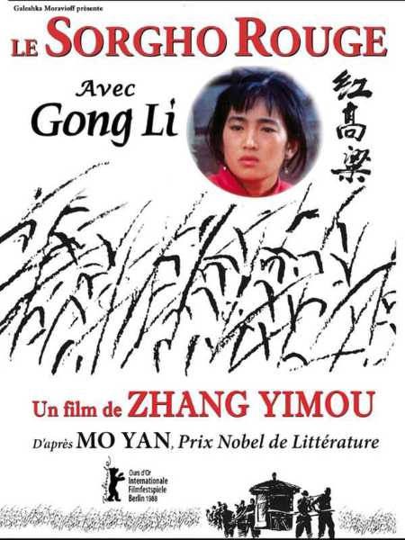 Une des nombreuses affiches du fil « Le Sorgho rouge – en Chinois 紅 高粱Hong Gaoliang - » de Zhang Yimou, avec en médaillon, Gong Li son actrice fétiche. Aujourd’hui âgée de 59 ans, elle avait 22 ans, lors de la production du film en 1987.