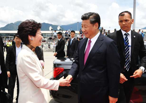 Le 1er Juillet 2017, Xi Jinping était à Hong Kong pour saluer Carie Lam, nouvelle tête de l’exécutif de la R.A.S et célébrer le 20e anniversaire de la rétrocession. A cette occasion, il avait clairement rappelé que Pékin ne tolèrerait jamais une remise en cause de la souveraineté de la Chine sur l’ancienne colonie britannique (photo : gouvernement de Hong Kong).