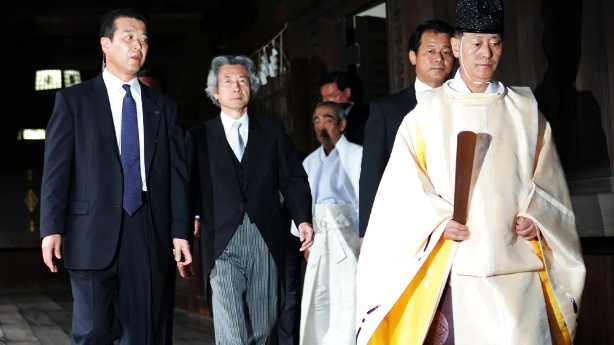 Au milieu des années 2000, le PM Koisumi au centre, qui réagissait aux constants rappels par Pékin des atrocités japonaises, enflamma le nationalisme chinois en se rendant au sanctuaire Yasukuni où sont encore honorés 14 criminels de guerre japonais de « classe A », y compris ceux condamnés par le tribunal de Tokyo en 1948 et pendus comme l’Amiral Tojo.