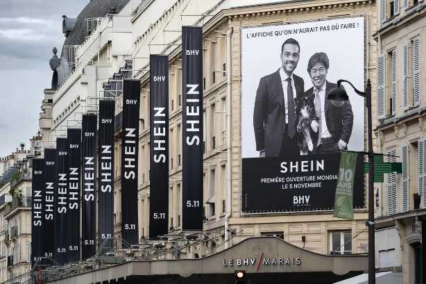Le 5 novembre, le BHV, rue de Rivoli, a, au milieu de fortes polémiques dénonçant une éthique commerciale douteuse, accueilli sur 1000 m2 de son 6e étage l’enseigne chinoise SHEIN. Détaillant de mode en ligne fondé en 2008, le groupe a développé un modèle commercial « d’ultra Fast Fashion », basé sur des prix bas impossibles à concurrencer en Occident, de modèles sans cesse renouvelés, des livraisons rapides, une forte présence sur les réseaux sociaux et, dans le collimateur des douanes françaises et européennes depuis le mois de mai, un approvisionnement venant de Chine par des centaines de millions de petits colis échappant aux droits de douane. Photo & crédit : Stéphane Ouzounoff / Hans Lucas / via AFP.